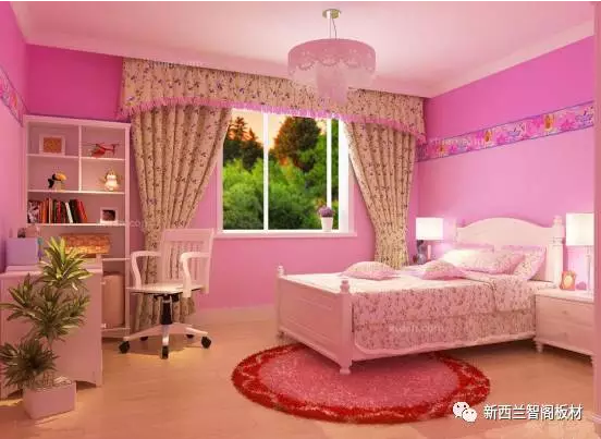 女孩子的房間相對于男孩子在配色上更適合暖色,如紅色、粉色等。這樣更容易營造出小公主的姿態。