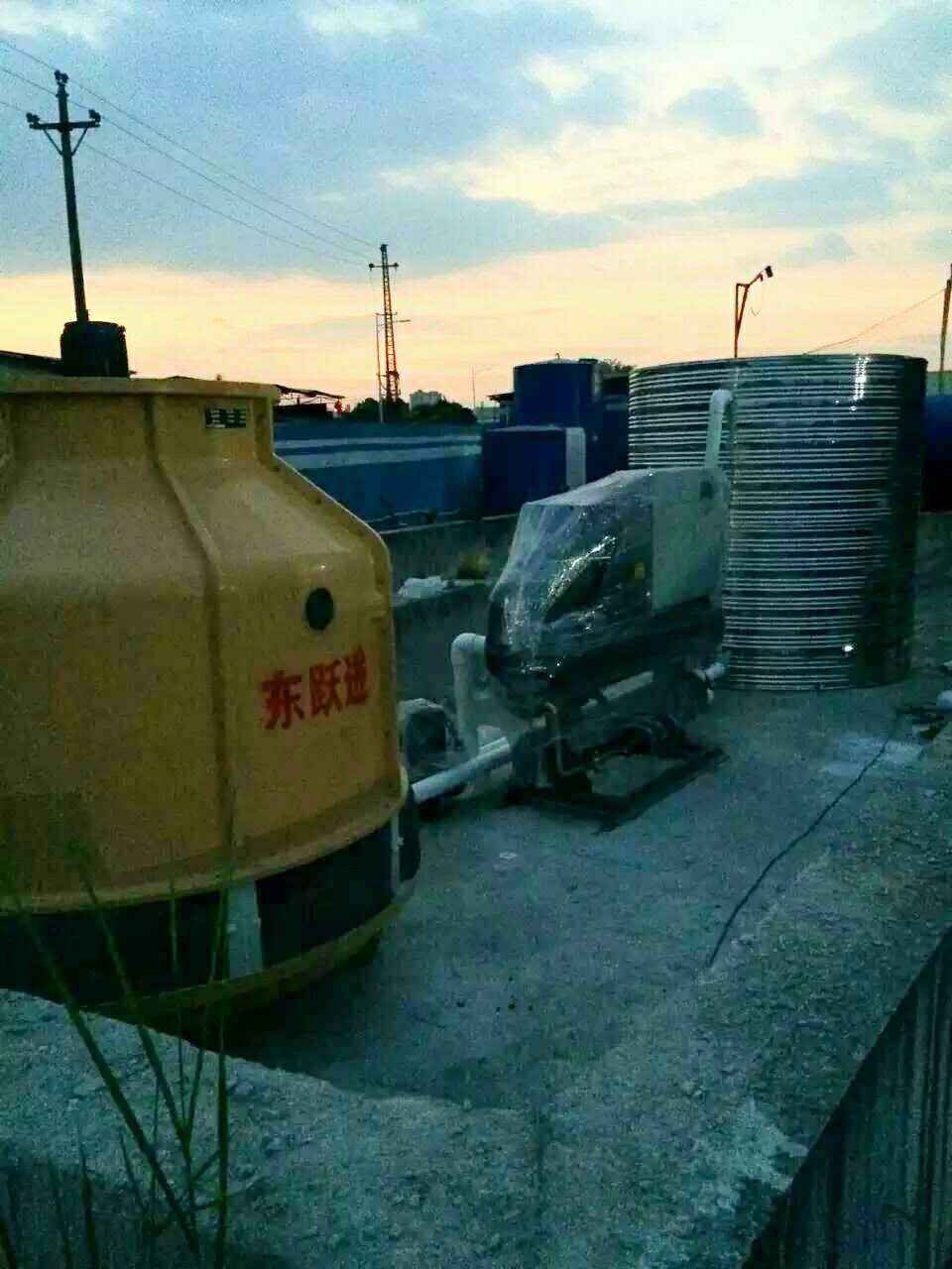 經(jīng)過供需雙方不斷的計算對比,最終確定選用水冷螺桿式冷水機3臺,并配套冷卻水塔、不銹鋼保溫水箱、循環(huán)水泵等輔助設備。