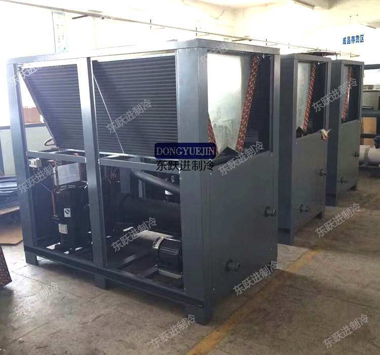 東躍進制冷經(jīng)過十幾年的發(fā)展,雖然風冷式箱式冷水機作為較簡單的機型,但是使用的客戶還是非常多的,我們也對其進行了多次升級,機組在性能上更加的穩(wěn)定,故障率也非常低,多壓縮機制冷系統(tǒng)設(shè)計使使用比較節(jié)能。雖然每個廠家的風冷箱式冷水機外觀不一樣,但實際上配置都相差無幾,都是由渦旋式壓縮機,殼管式或水箱盤管式蒸發(fā)器,翅片式冷凝器,水泵,風機,膨脹閥,過濾器,高低壓壓力表,電控系統(tǒng),機箱等組成。